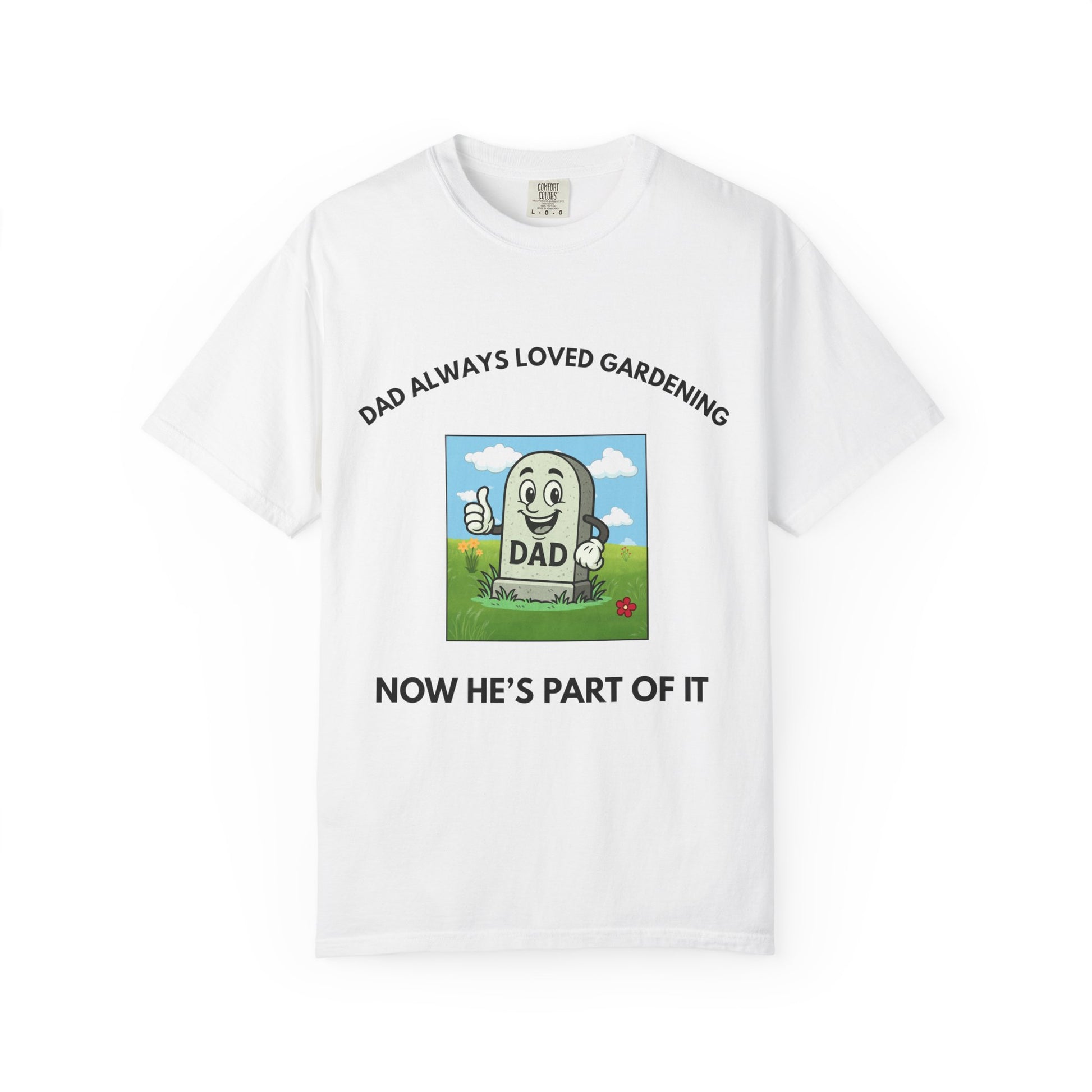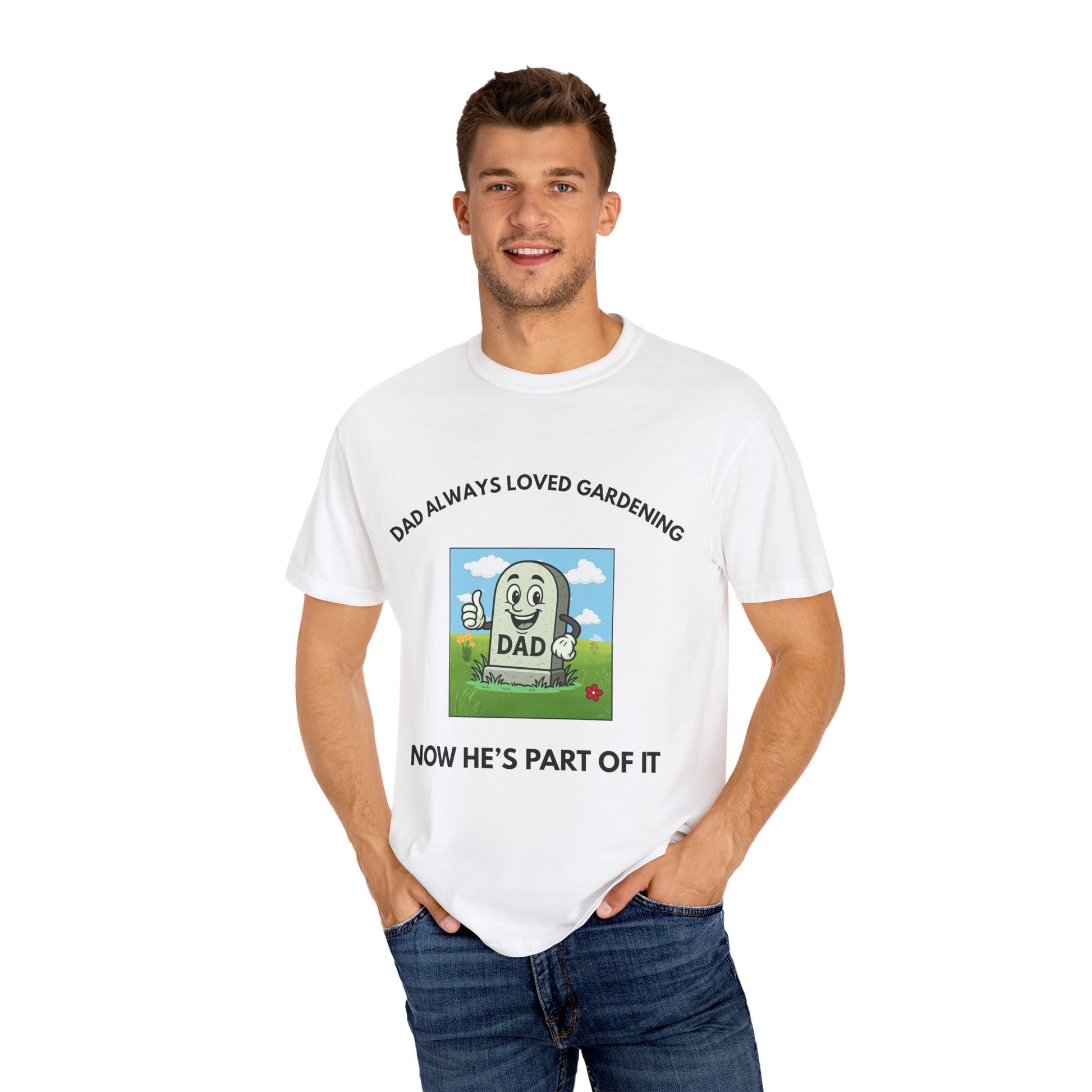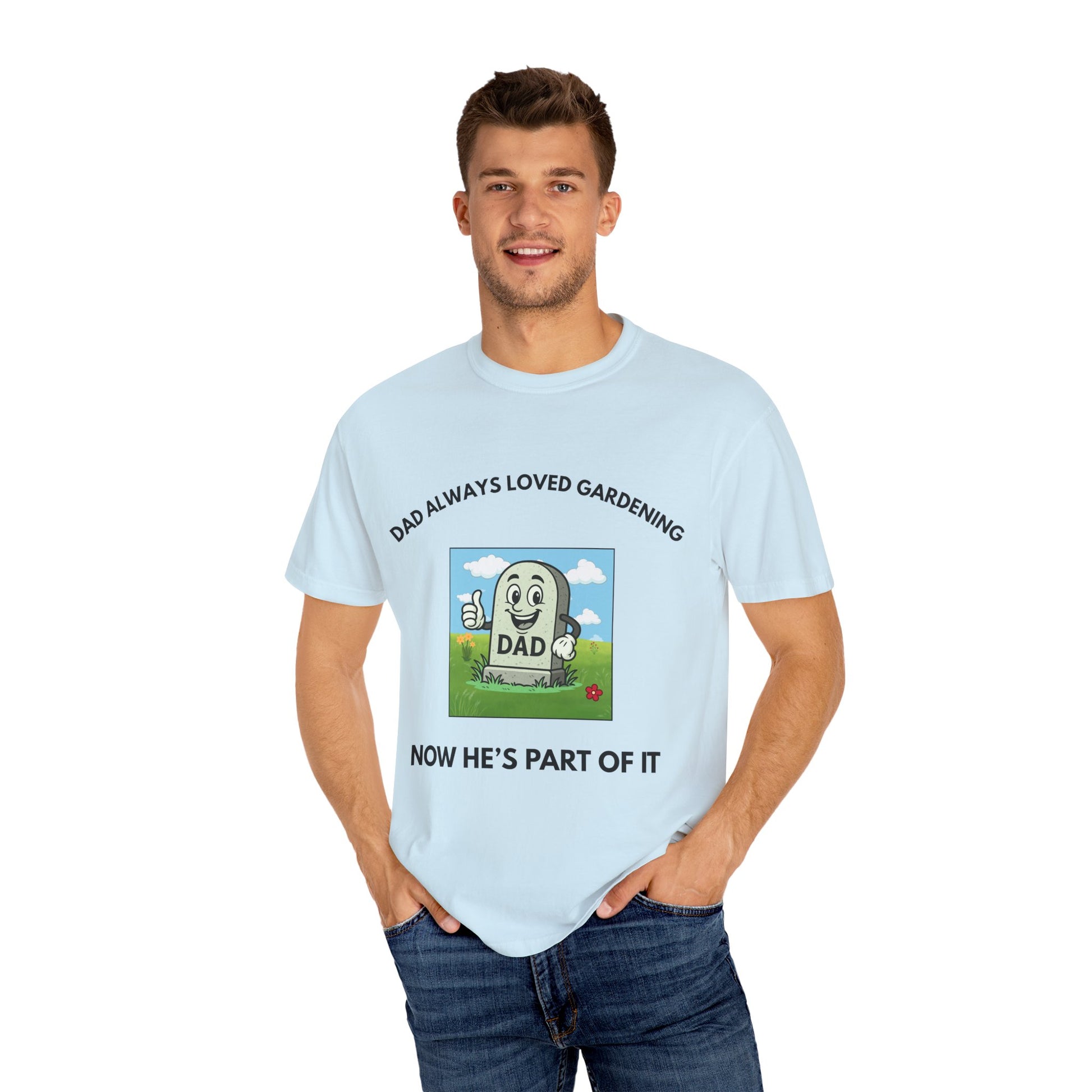 Embrace the spirit of gardening with this charming Unisex Garment-Dyed T-shirt. The soft, textured fabric brings a cozy vibe that makes it perfect for everyday wear or as a thoughtful gift for the gardening enthusiast in your life. Whether it's a family gathering, a backyard BBQ, or a casual day out, this shirt adds a touch of warmth and personality to any occasion. Ideal for Father's Day, birthdays, or simply as a gesture of love towards dads who cherish their garden, this T-shirt is perfect for anyone who finds joy in nurturing plants. Celebrate the connection between loved ones and nature with this delightful addition to their wardrobe!